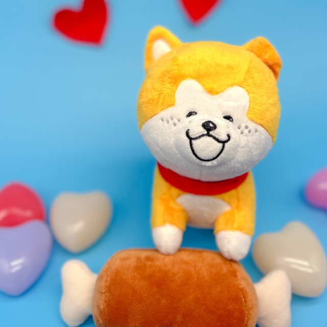 「秋田犬たれみみだいちゃん」のぬいぐるみがついに完成しました!だいちゃんのチャームポイントである”たれた耳”とクロワッサンのような”くるんとしたしっぽ”を忠実に再現しました。ふわふわの手触りとかわいらしいサイズ感に癒されるぬいぐるみです。