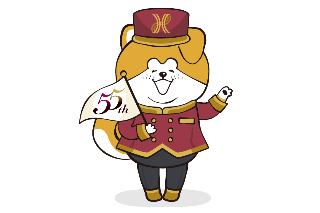 秋田キャッスルホテルは2025年で開業55周年を迎えました。これを記念して誕生したのが「秋田犬たれみみだいちゃん」と秋田キャッスルホテルがコラボレーションしたオリジナルキャラクター「ホテルマンだいちゃん」です。当ホテルのブランドカラーの制服に身を包んだベルボーイ姿のだいちゃんをよろしくお願いします♪